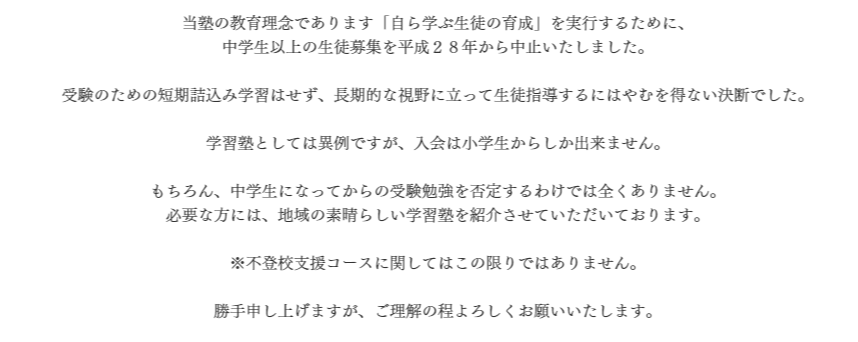 2016年度からは中学生・高校生からの入塾は出来なくなりました。